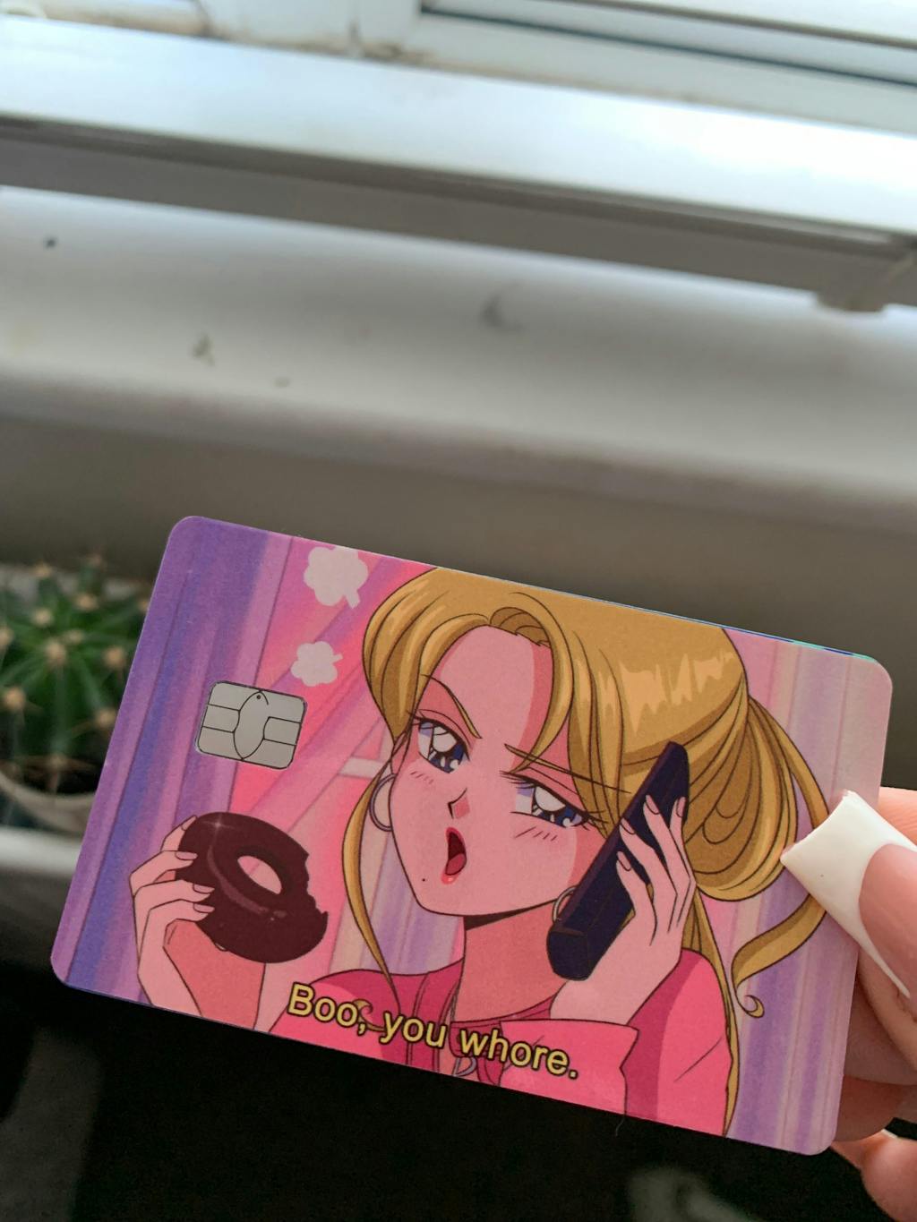 Instantly customize your bank cards, metro passes, gift cards and more with this design: Boo, you wh!re created by Hanavbara