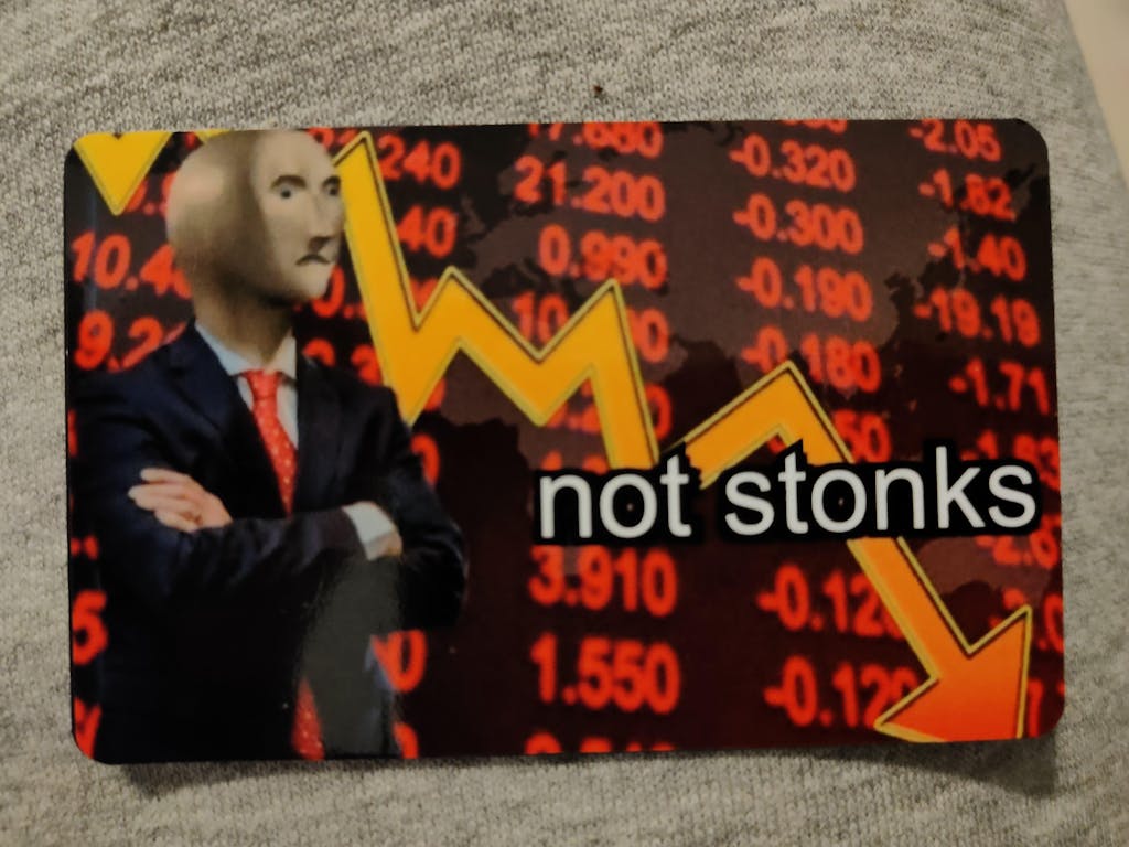Instantly customize your bank cards, metro passes, gift cards and more with this design: Not Stonks created by Originals